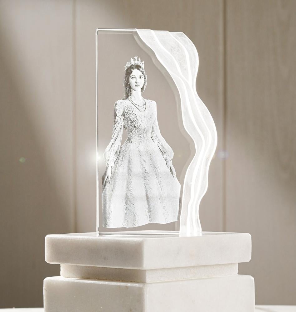 جمّل مساحتك بهذه القطعة العصرية، يدمج هذا التصميم بسلاسة بين البساطة و الفخامة، وهو هدية مثالية ترمز إلى ذكرى ثمينة محفوظة في الكريستال. يزيده سحرًا صوركم المنحوتة بحبٍّ وتفانٍ بداخله بتقنية ثلاثية الأبعاد. خصِصّت هذه القطعة لتكون تذكارًا ثمينًا لكم ولأحبتكم.