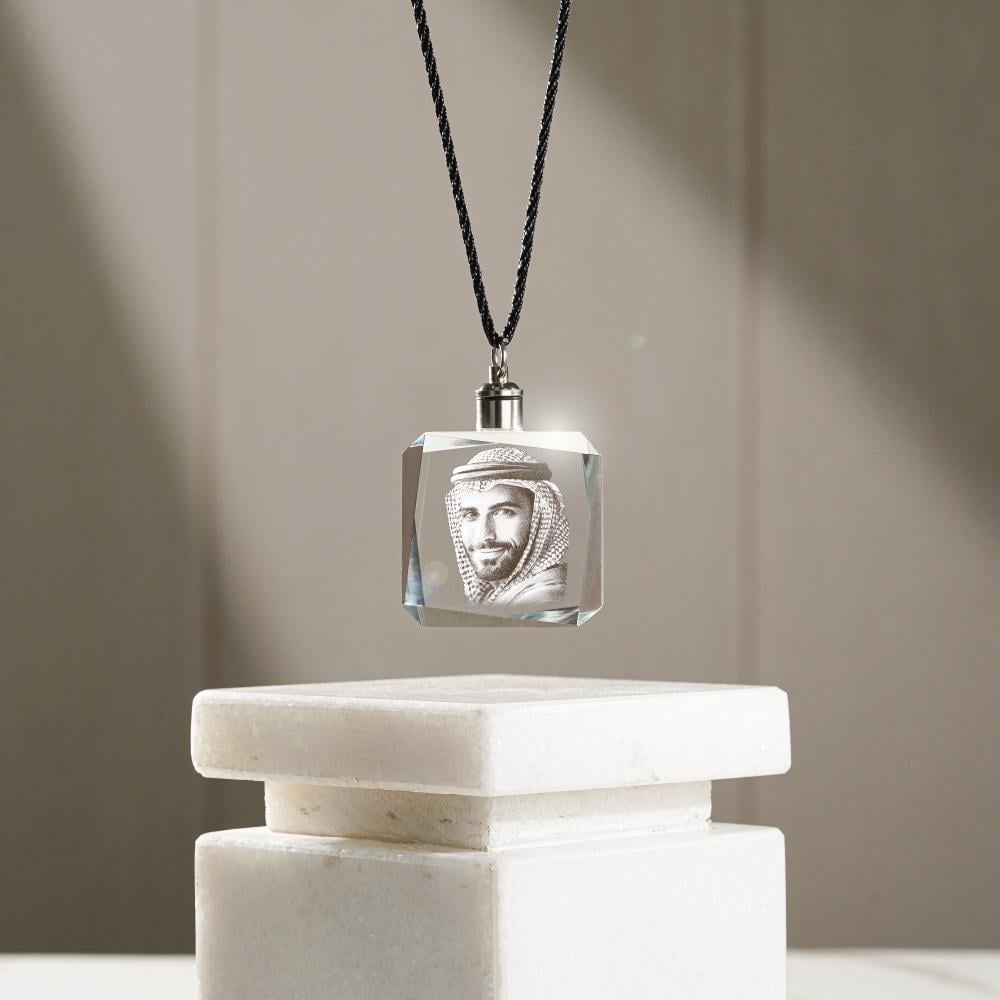 Discover Explore the new "Al Barlayan Necklace and Medal" design from the Creativo special collection. Our classic crystal features finely carved edges, and is designed with our special touch to become a precious souvenir holding the cherished pictures of your loved ones engraved with love.